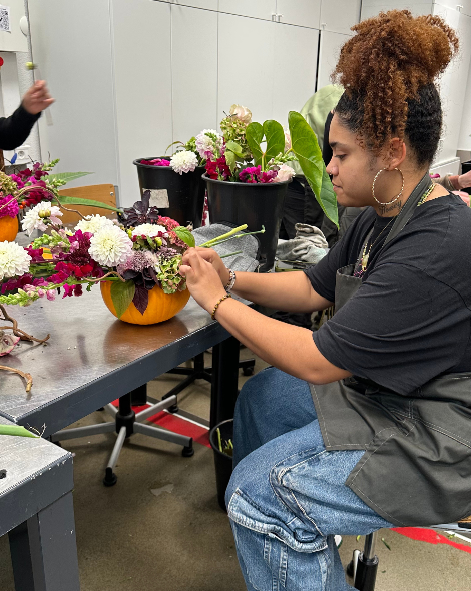 Cours sur les citrouilles fleuries à l'École Nationale des Fleuristes