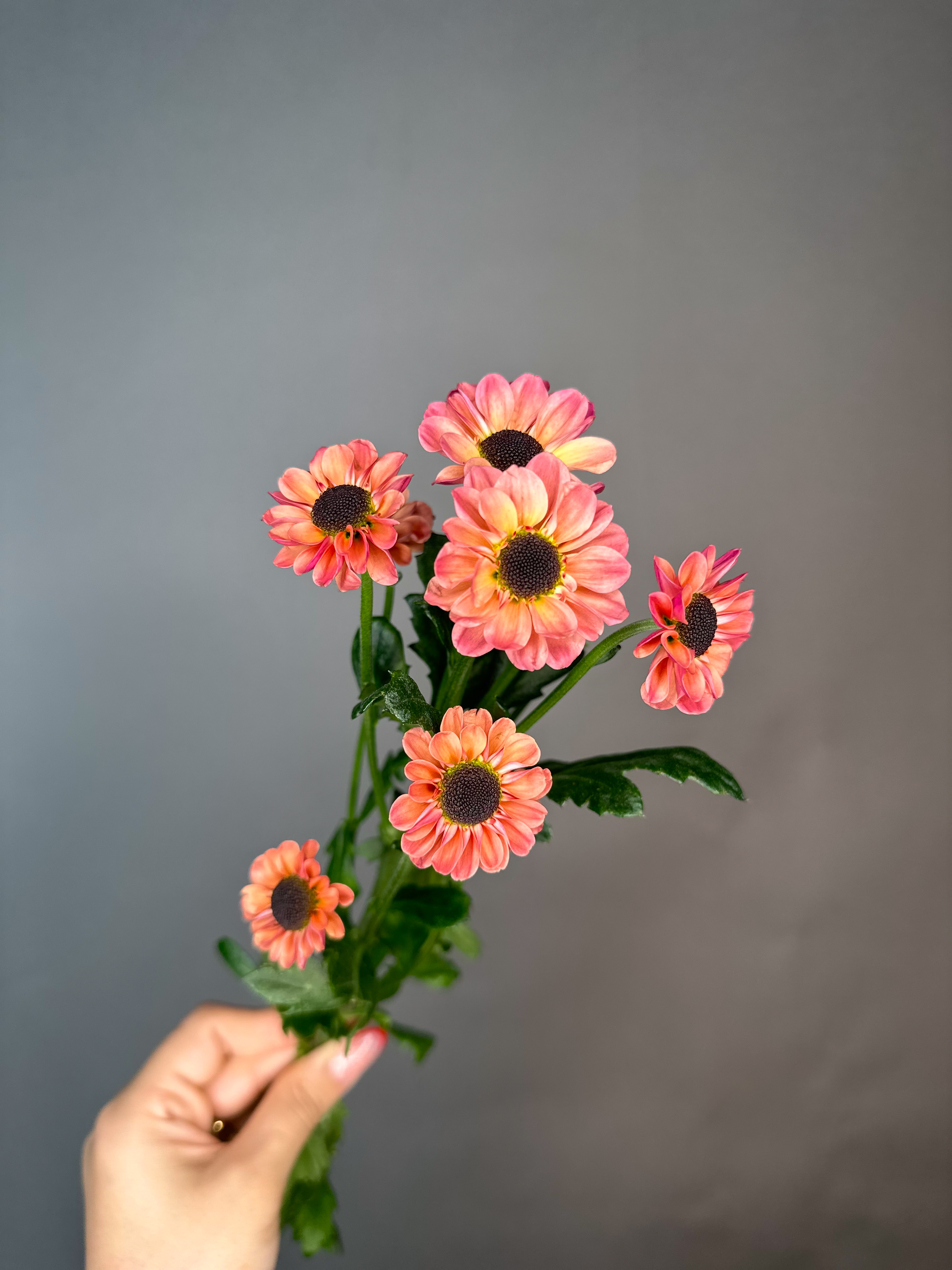 La Chrysanthème se distingue par ses fleurs en forme de marguerite, composées de nombreux pétales disposés en cercle autour d'un centre dense. Elle existe dans une variété de couleurs, allant du blanc pur au jaune éclatant, en passant par le rose, le pourpre et même le rouge. Certaines variétés arborent des motifs multicolores et des dégradés subtils, ajoutant encore à leur attrait esthétique. La plante peut varier en taille, depuis de petites fleurs délicates jusqu'à de grandes inflorescences spectaculaires, en fonction de l'espèce et de la variété.