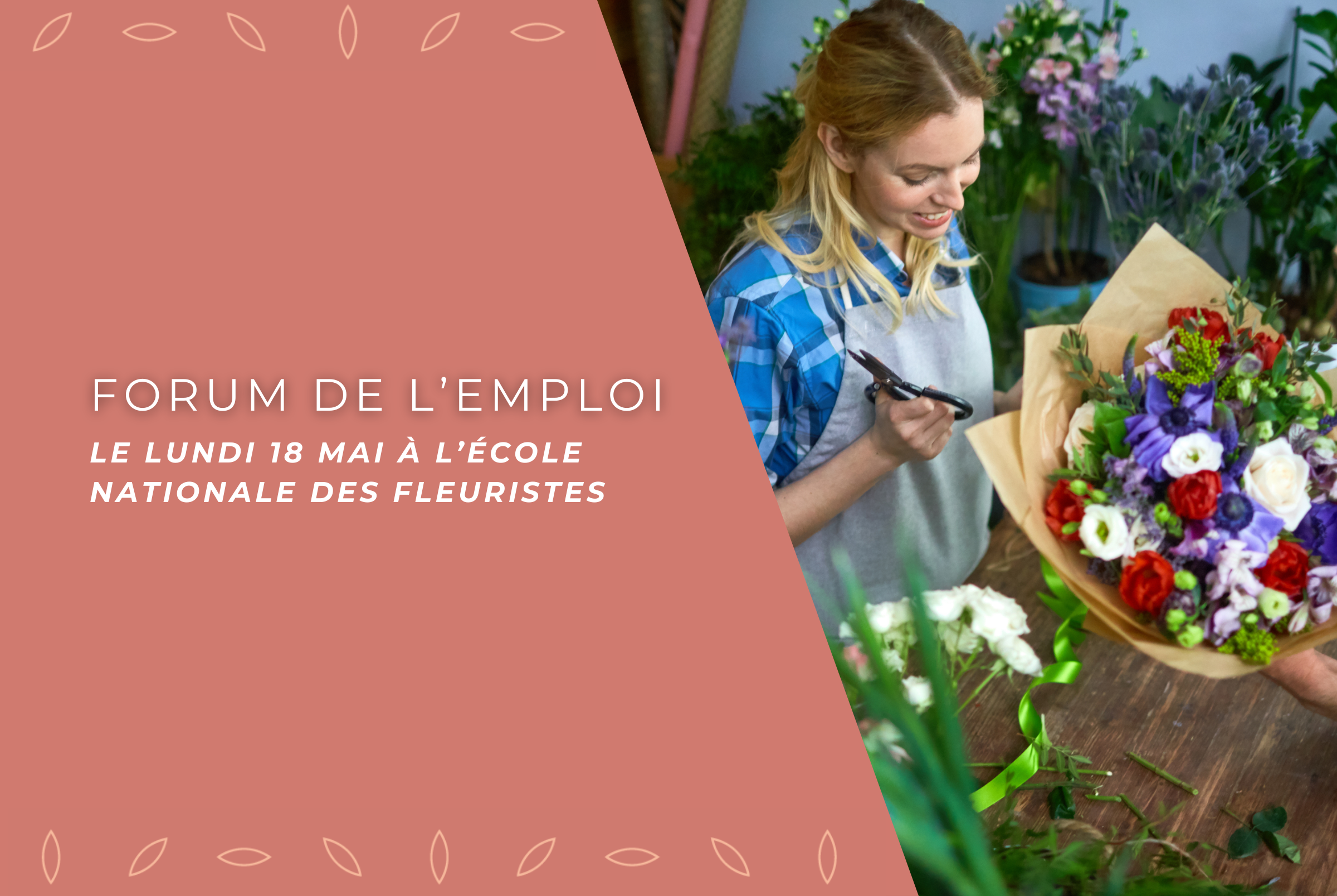 Participez au forum de l'emploi organisé par l'Union Nationale des Fleuristes le lundi 18 mai à l'École Nationale des Fleuristes !