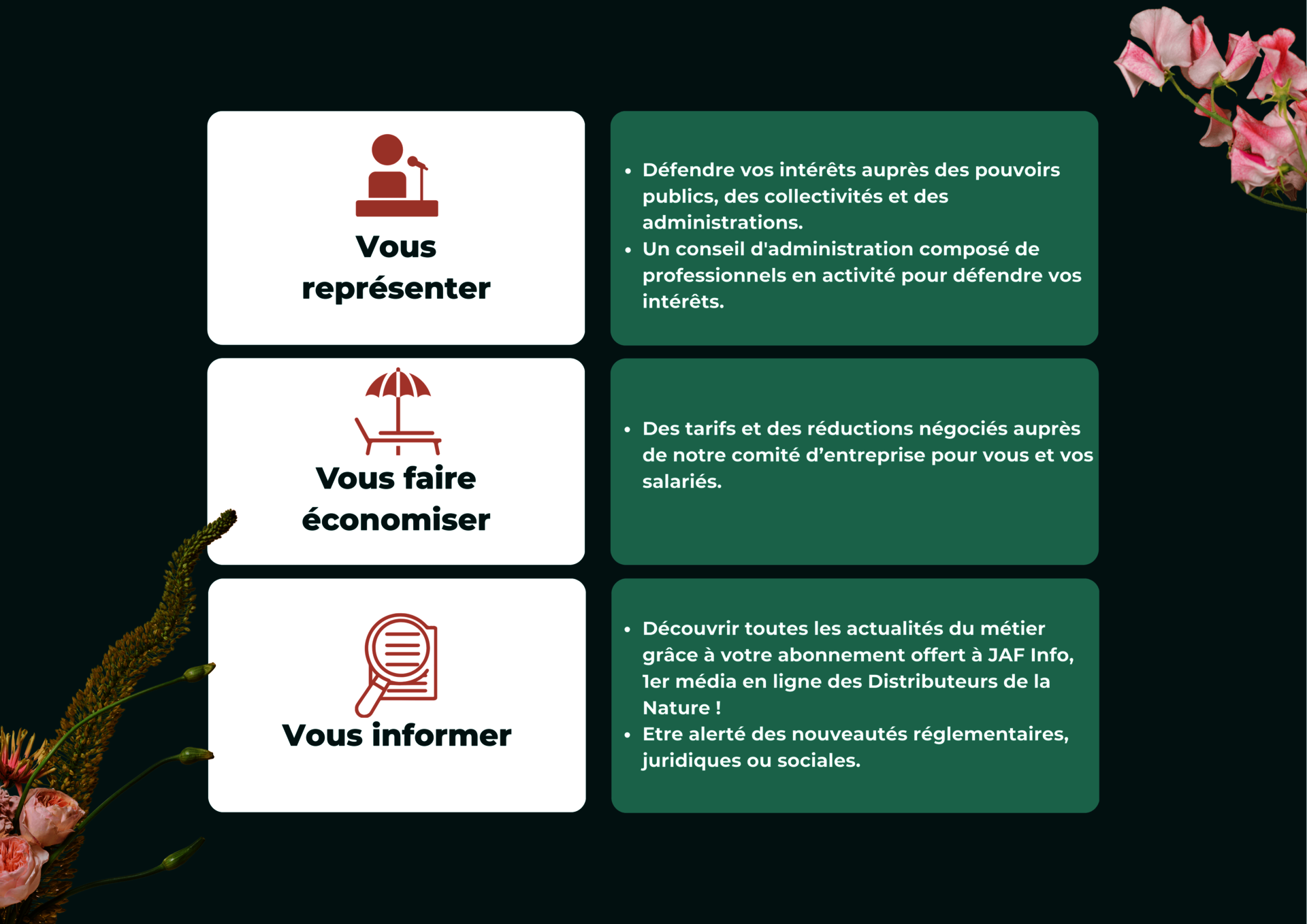 - Découvrir toutes les actualités du métier grâce à votre abonnement offert à JAF Info, 1er média en ligne des Distributeurs de la Nature !